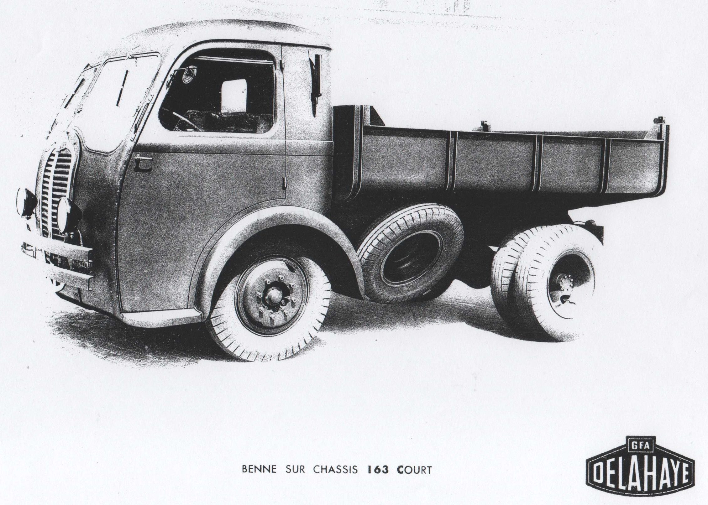 Le type 163 est un camion moderne de moyen tonnage. Il se décline dans un grand nombre de versions avec quatre motorisations essence et diesel et cinq tailles de châssis dont une configuration semi remorque. Produit pendant huit ans à 4500 exemplaires et largement exporté, il couvre une large palette d’utilisation de transports de marchandises et d’utilisations spéciales (pompiers). Il est aussi carrossé en autocars de tailles diverses et plusieurs fois primés. Contribuant à la relance de l’entreprise après la guerre dans le cadre du Groupement GFA, il est présent au catalogue jusqu’à la fusion avec Hotchkiss en 1954. Il est à ce titre emblématique de la position de Delahaye sur le marché des camions et il représente un socle solide et stable sur lequel s’appuie l’entreprise pendant toute la période de l’après-guerre.